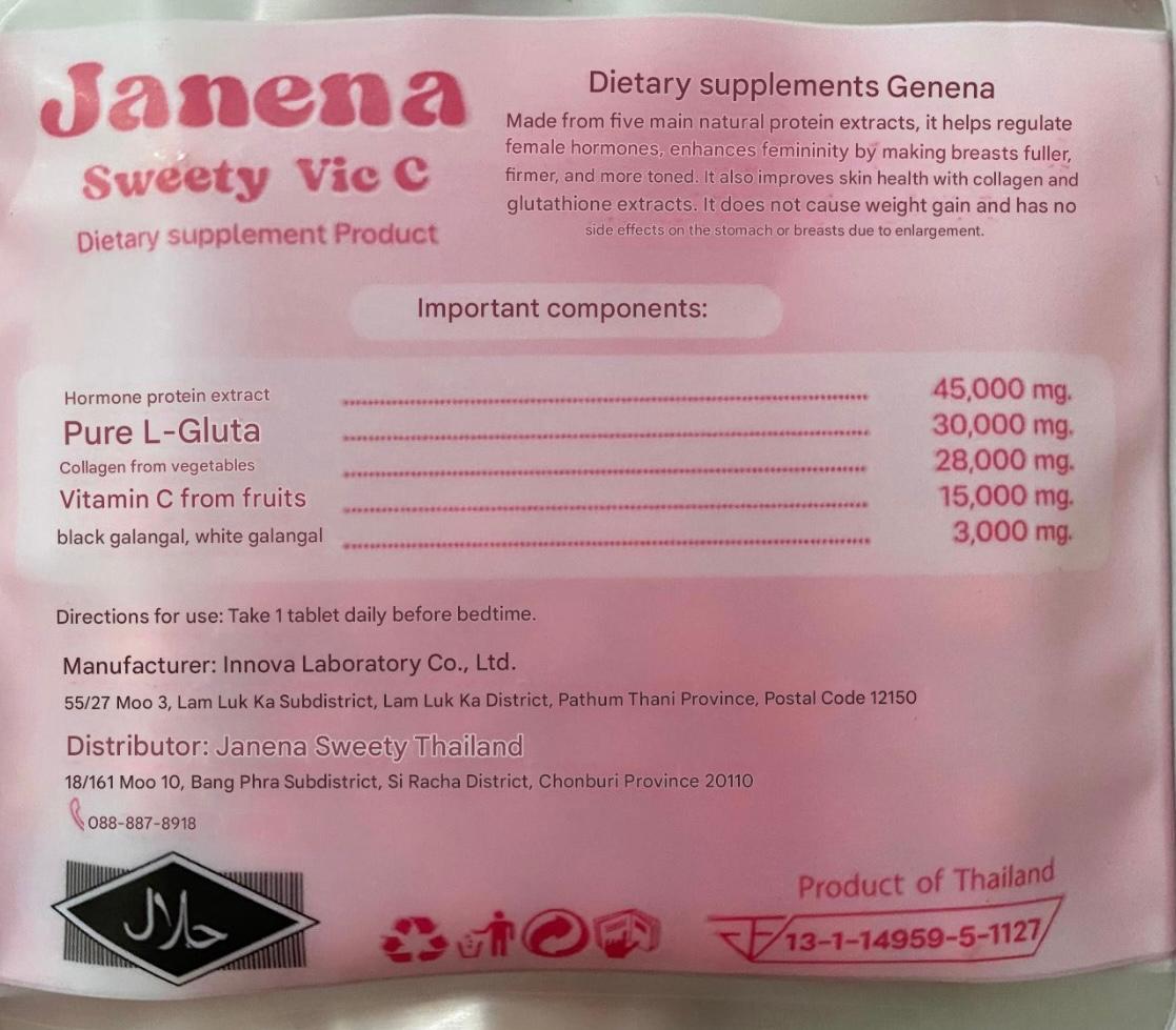 Made from protein extracted from 5 main natural extracts, helps adjust female hormones, increases femininity, makes breasts fuller, adjusts them to be firm, tight, and also helps with skin from extracts of both collagen and glutathione. There is no effect on weight gain and no side effects on the stomach and breasts.